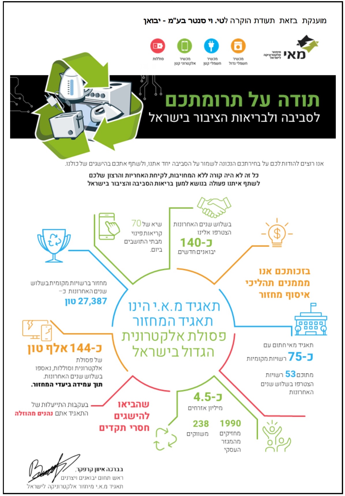 יש לעדכן בהערות ההזמנה/מול נציג טלפוני על פינוי פסולת אלקטרונית